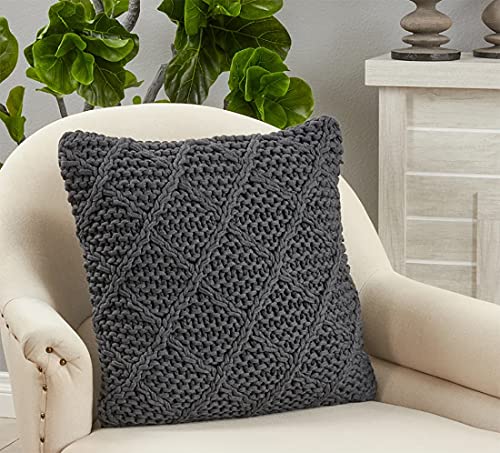 - SLATE KNITTED DIAMOND THROW PILLOW – Add a tasteful touch of texture, warm flair with the Knitted Diamond Throw Pillow from Fennco Styles. It showcased a soft grey color, with knitted details with a diamond pattern for enhanced appeal. Its chunky knit design brings extra texture and addition to your winter decor, let it stand alone as the perfect accent piece to your sofa or recliner year-round, or pair with a small red pillow for a festive Christmas-themed look. Solid on the back.