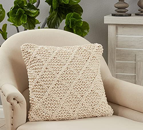 - PERFECT COUCH PILLOW DECOR – At 20 inches in both width and length, this decorative pillow is perfectly sized for layering on your bed and sofa décor. Combination of a neutral hue and knit detailing create a perfect background for a classic flair. Pair with coordinating pieces or mix and match with printed or textured pillows for dynamic style.