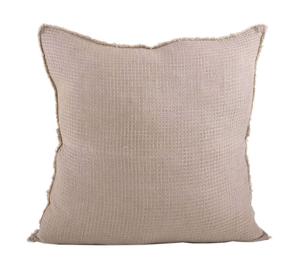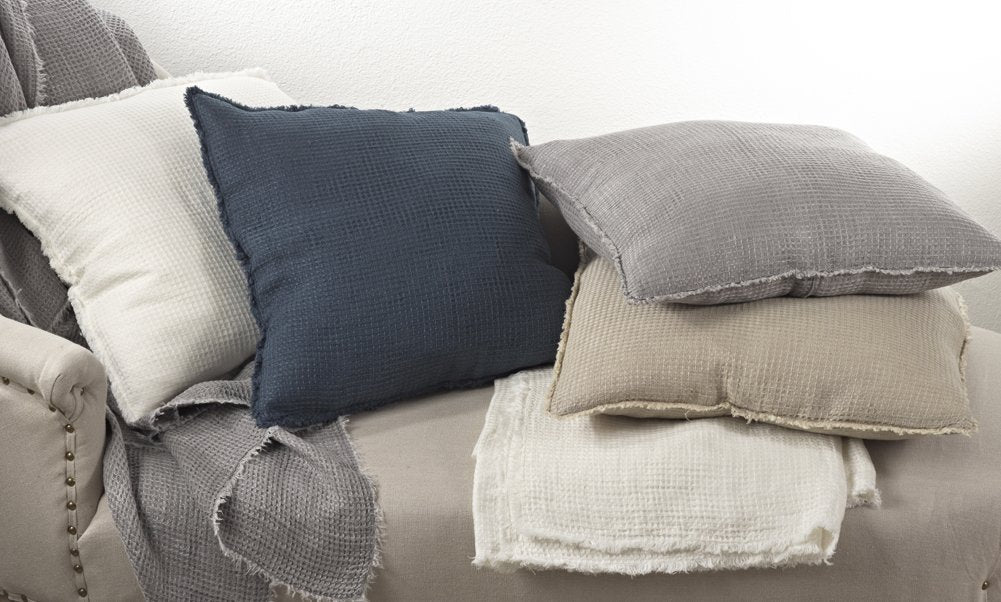 - WAFFLE WEAVE THROW PILLOWS - Add texture and frayed edges for a relaxed and inviting bed with a toss of our refreshed and updated linen throw pillow. Features a distinctive pattern and solid color. Easily to mix and match with other cushions for a layering effect, it's the perfect choice for tasteful decoration of your living room or bedroom.