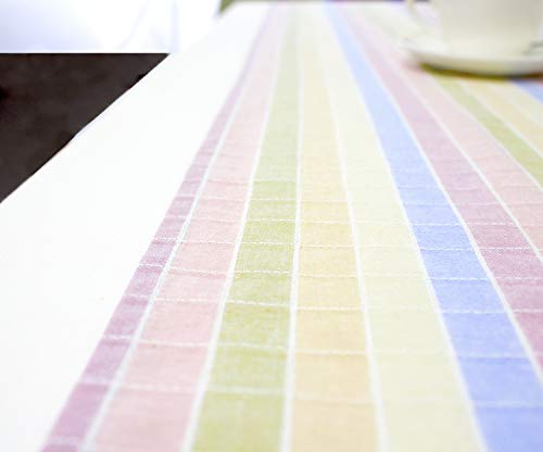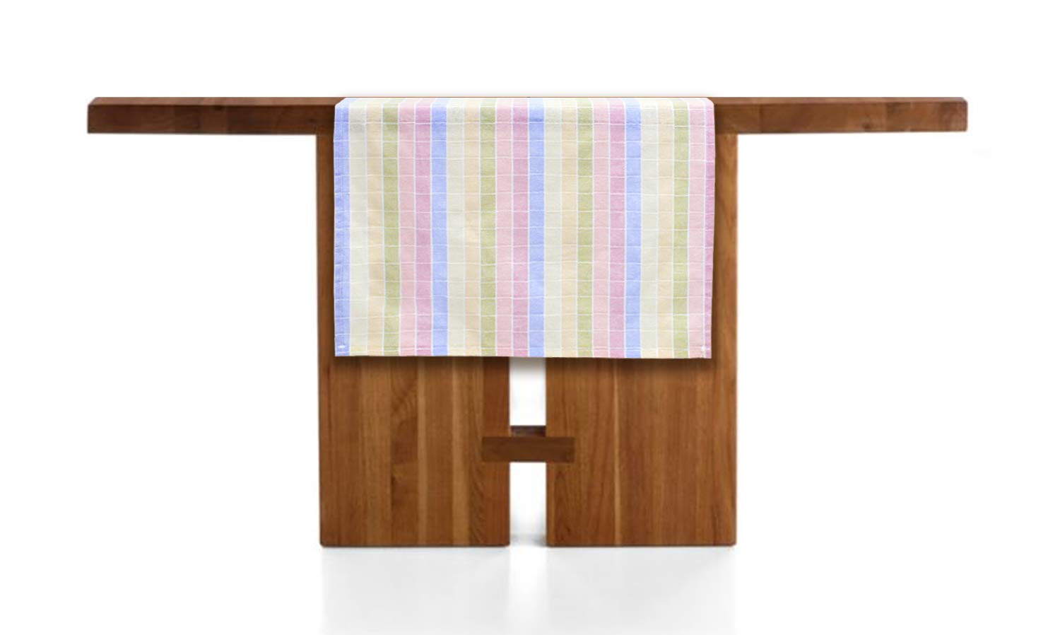 - STITCHED CHECKERED CLOTH RUNNER - Featuring pale colors print on pure cotton, this versatile table linen with its delightful pink, aqua, blue, yellow, and white pastel plaid design will buoy your spirits every time you sit to enjoy a meal. The stitched checkered design creates an appealing look for your dining table. The multi-patterned design makes it easy to match with a wide array of place settings.