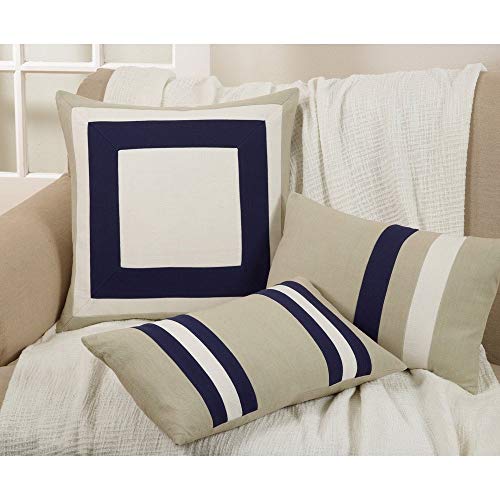 - -DUAL BAND PANEL DESIGN THROW PILLOW – An accent pillow is the perfect way to give an instant style upgrade to any room! The timeless design and neutral colors of these panel design throw pillows create a classic preppy lake house style. Made from 100-percent cotton, this accent pillow looks good on any sofa, chair or bed.