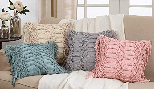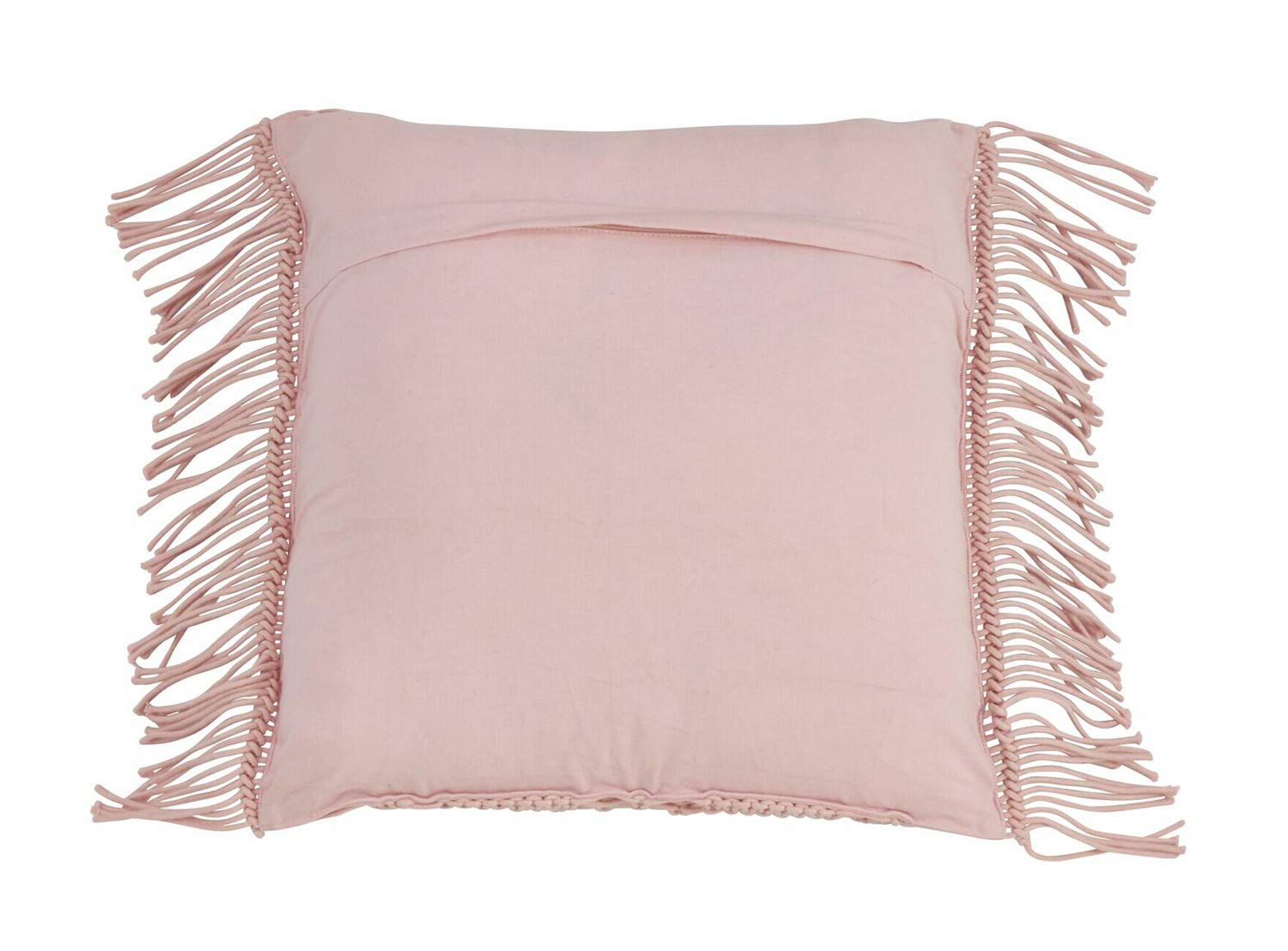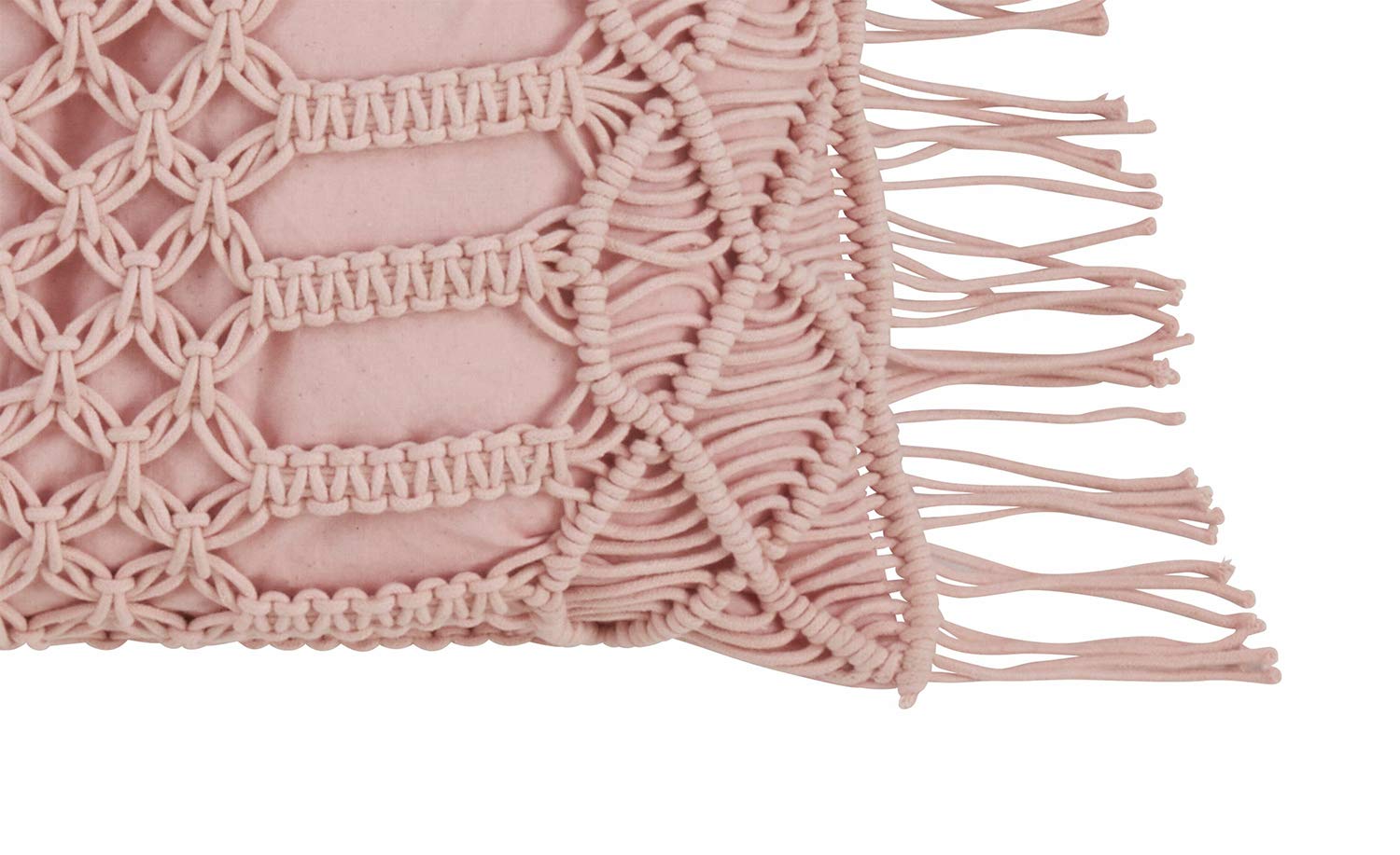 - DIAMOND MACRAMÉ THROW PILLOW - Featuring rose pink on pure cotton, this unique intricate decorative throw pillow is the perfect choice for tasteful decoration of your living room or bedroom. Design intended for top side only, solid color at the back. Features an intricate macramé design with fringe detail, and it looks lovely on your sofa, bed or chair.