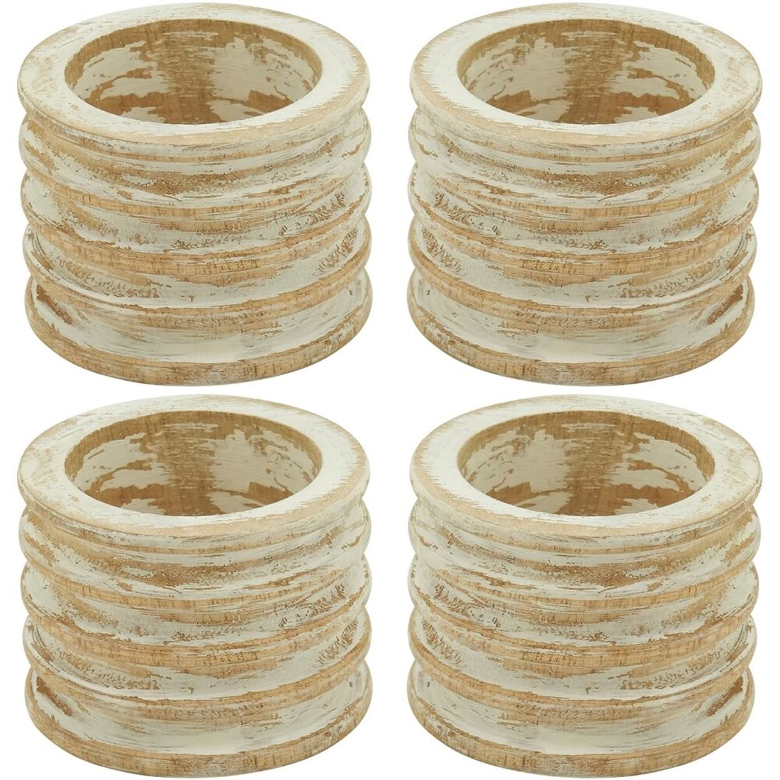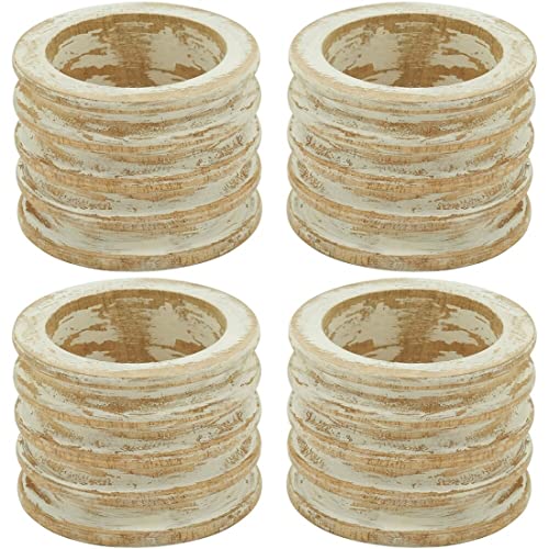 Fennco Styles Mango Wood Ribbed Napkin Rings, Set of 4 - Natural Decorative Wooden Napkin Holders for Home, Dining Room, Banquet, Family Gathering, Holiday and Special Occasion