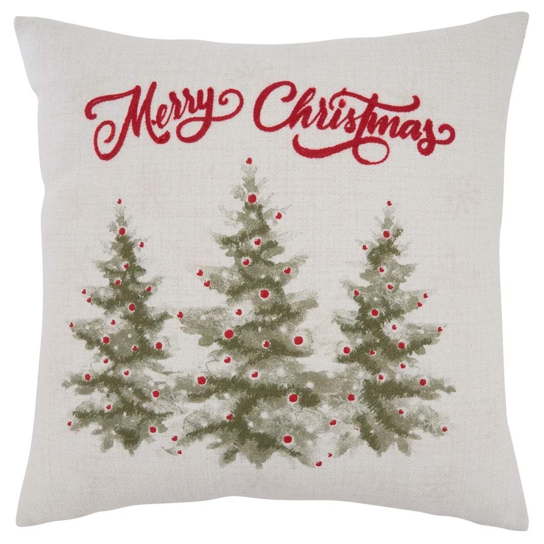 - MERRY CHRISTMAS HOLIDAY TREES THROW PILLOW – Add a cheerful note to your home with this stunning pillow cover. It features a timeless Christmas message with three lovely holiday trees adorned with small red dots as lights decorations. Pair with other, solid color throw pillows to help it stand out. Design is not reversible.