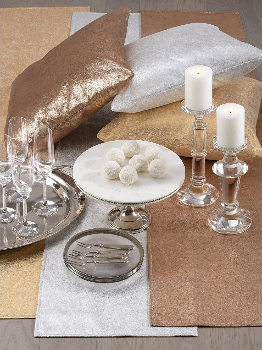 - METALLIC GLAM TABLE RUNNER – Add a touch of glam to your dining table and make your special occasion or event memorable with the Shimmering Table Runner. Featuring the metallic 'brushed on' effect creates a subtle shimmer for a beautiful accent piece while adding soft texture. Subtle in hue, this runner is versatile and easily styled with existing décor, perfect for everyday decor use and casual dinner parties, or weddings, formal occasions!