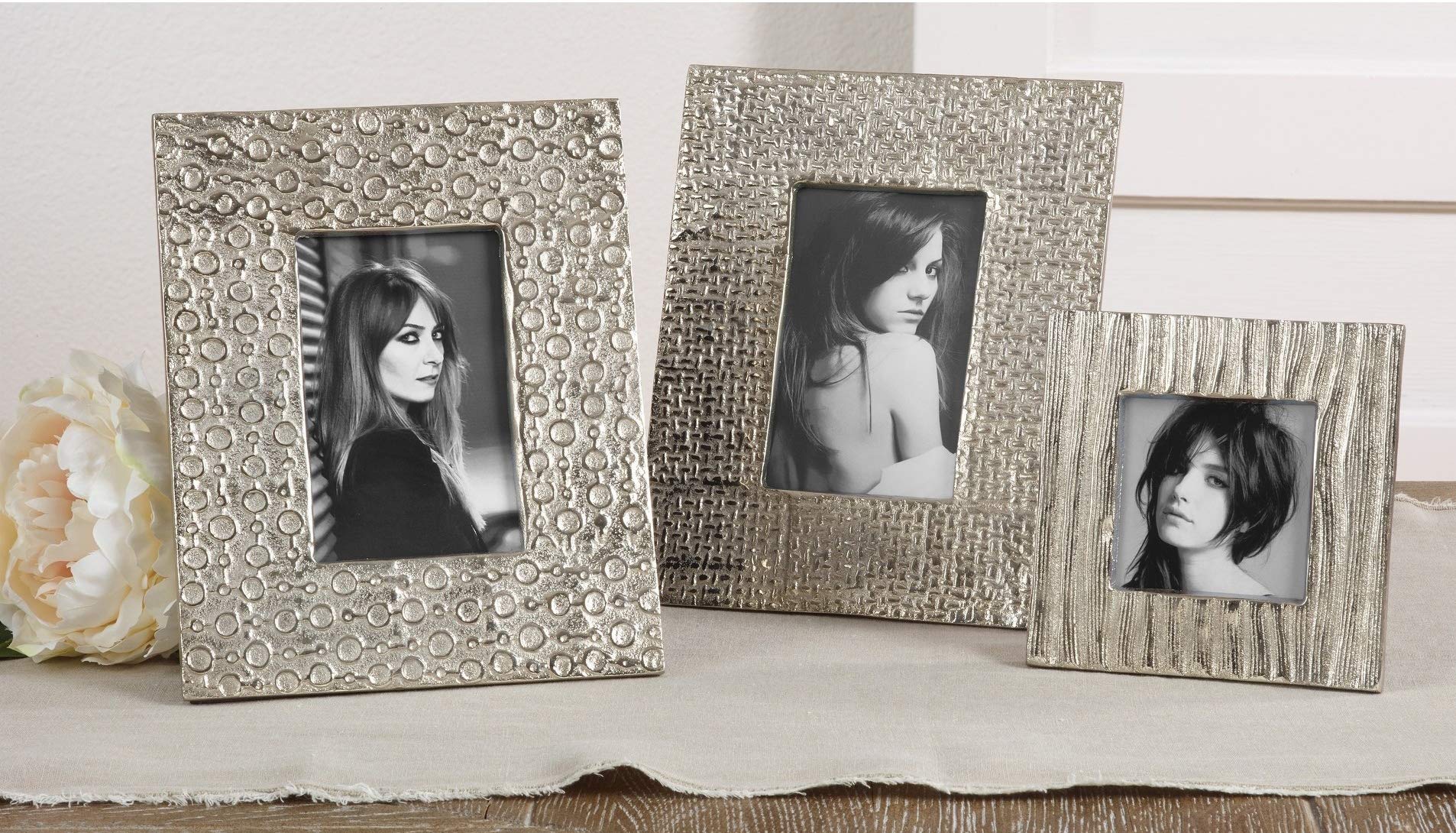 Details: With a hammered design, this picture frame is a lovely addition to any home with a modern décor. It features clean, straight lines and very wide borders, a stylish aesthetics that will easily blend in. It can be both mounted on a wall and placed on a tabletop.