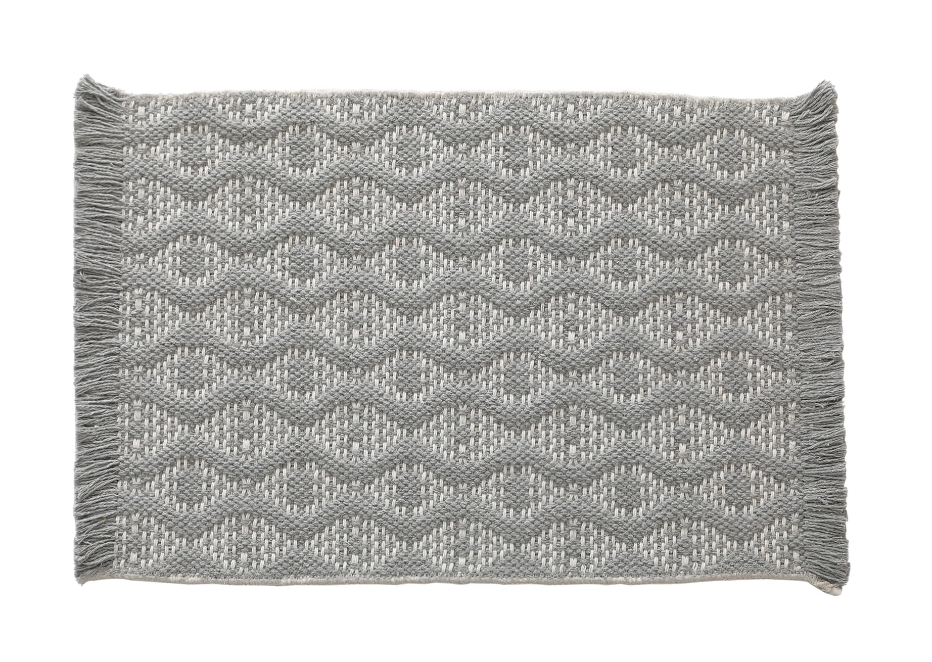Fennco Styles Modern Diamond Woven Placemats 12" W x 19" L, Set of 4 - Grey Geometric Fringe Table Mats for Dining Room, Banquets, Family Gatherings, and Holidays