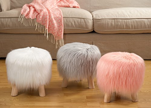 - Made of 100% polyester and three wood support legs faux fur foot stool ottoman
