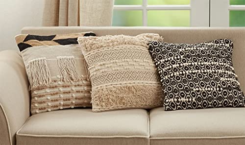 Details: Fennco Styles Moroccan Tufted Cotton Decorative Throw Pillow Add a soft touch of texture and style to your living room area this Moroccan Tufted Throw Pillow. Crafted with a breathable cotton exterior, designed with embroidered diamond detailing with knotted and braid accents that lend a refreshing pop to your space. This neutral tone accent pillow brings beautiful contrast and texture to any room décor, pair it with solid colors in more mute tones for modern or boho-chic homes. Solid on the back. PRODUCT DETAILS : Dimensions: 18 x 18 inches Material: cotton Care; cold machine wash, do not bleach, tumble dry low. Our Philosophy: At Fennco Styles you can shop a carefully selected range of home, lifestyle and gift products. We believe our homes should be reflections of the journeys we take. Our personal spaces deserve designs with a soul, a story, and a purpose. Our lifestyle brand offers inspired living through high-quality products, exclusive designs, and timeless style. We aim to source ethically, looking for products that are made from sustainable materials and designed to last and seeking out Makers that are conscious of their impact on the environment.