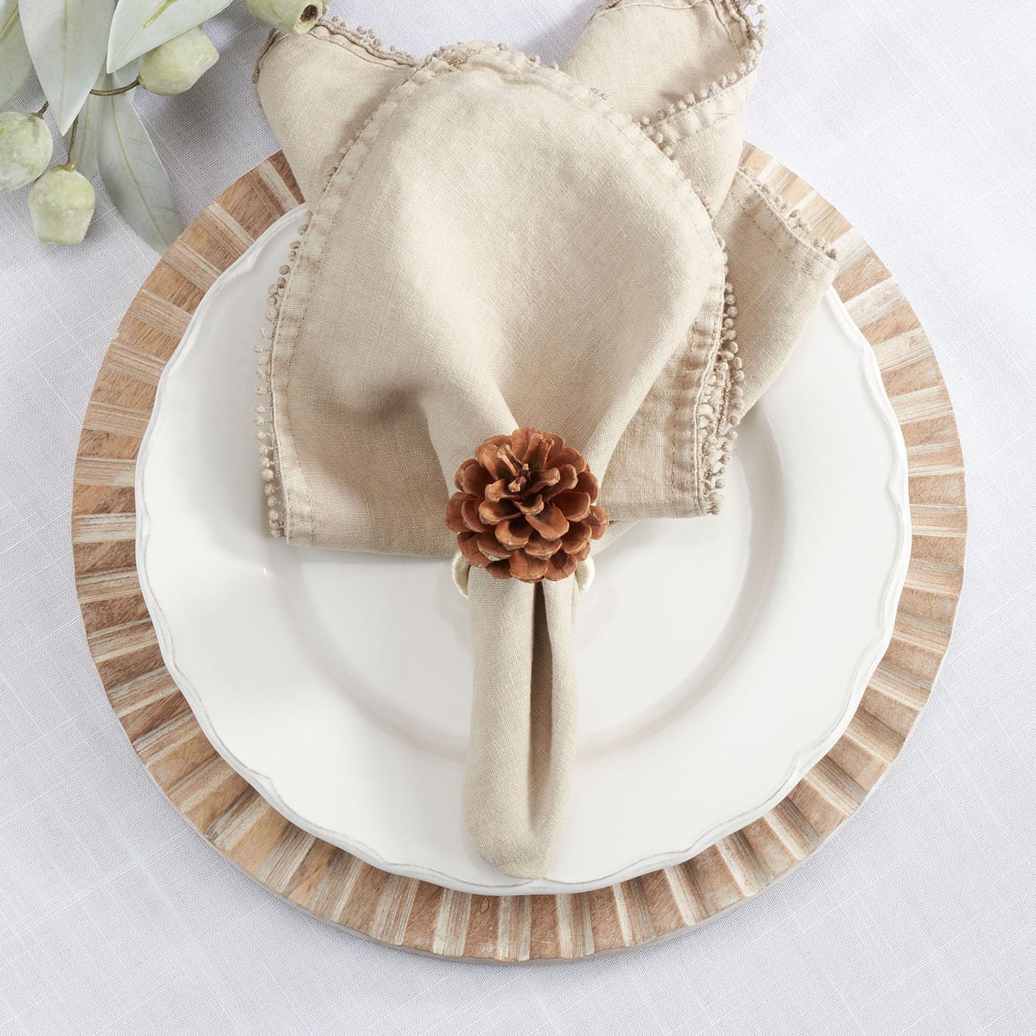 - NATURAL PINECONE METAL NAPKIN RINGS, SET OF 4 – Bring a natural woodsy accent to the table with these Pinecone Napkin Rings. Crafted with a natural pinecone, these napkin ring holders are very stylish in design, especially when paired with linen table napkins. Natural pinecone top brings nature's touch to your home decor.