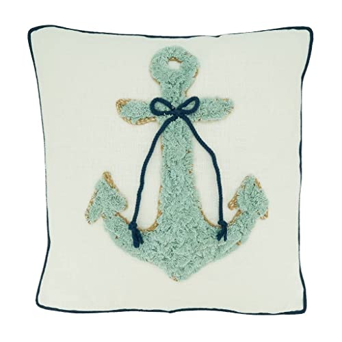 - ANCHOR APPLIQUE COTTON THROW PILLOW – Bring coastal styles to your home décor with the Anchor Appliqué Throw Pillow. It features an eye-catching blue anchor against a cream background adding a fresh nautical vibe and textural to your space while neutral hues make it easy to fit within any existing decor. This beautiful design throw pillow is perfect for summer and beach house decor, lay it solo on a chair or pair it with other nautical print pillows on the sofa to make it pop even more!!