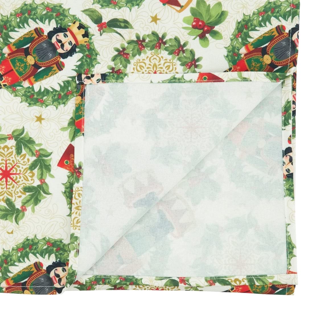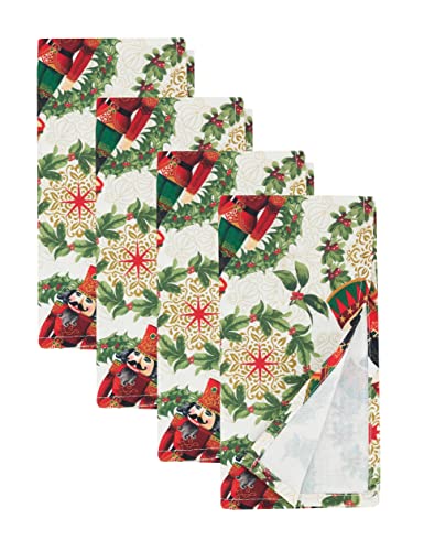 - 4PK NUTCRACKER DESIGN CLOTH NAPKINS – Bring a whimsical addition to any Christmas tablescape with these Nutcracker Holiday Cloth Napkins. The design features rich patterns of nutcracker and holly in deep, beautiful shades of red, green, and white creating a perfect backdrop for your holiday dinner table. The traditional holiday colors and tones are easy to pair with the Christmas-inspired table linens, these charming nutcracker napkins help set a festive tabletop for the holiday season.
