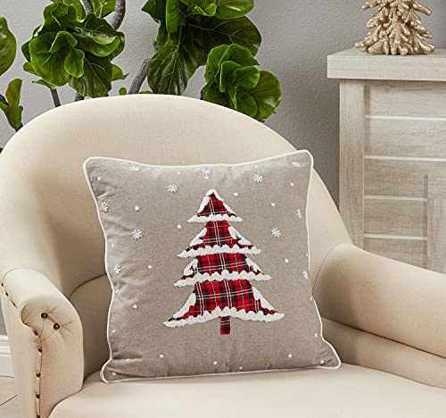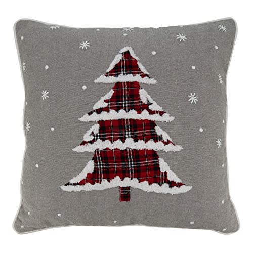Fennco Styles Plaid Christmas Tree Cotton Throw Pillow 18" W x 18" L - Grey Festive Cushion for Holiday Décor, Couch, Living Room, Bedroom Décor and Special Occasion
