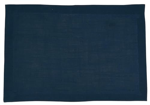 Fennco Styles Pleated Design Navy Blue Placemats 13" W X 19" L, Set of 4 - Classic Border Table Mats for Everyday Use, Dining Room Décor, Family Gatherings and Special Occasions