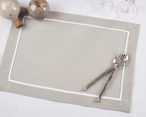 - PREMIUM QUALITY – We craft our modern table linen from superior quality with polyester construction. soft, breathable fabric for lasting use, it can easily stand up to the demands of mealtime. This classic border design placemat will quickly become your go-to piece for every occasion and offer an inviting enhancement to your dining area, great for casual entertaining, weddings, holidays, and special occasions. Care: Machine wash, delicate cycle, lay flat to dry.