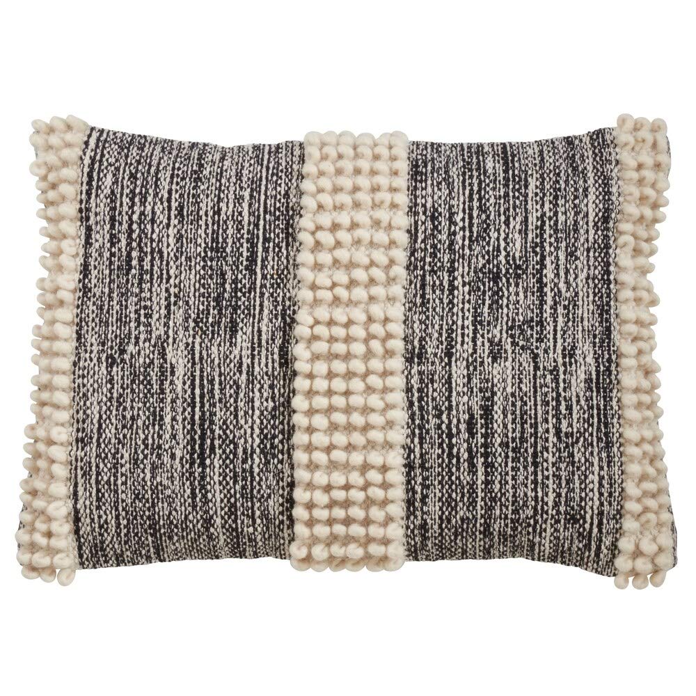 - > POM POM STRIPE DESIGN THROW PILLOW – Embellish your sofa, chair, or loveseat with the soft textured pom pom striped design of this rectangle or square-shaped throw pillow. This rustic-style throw pillow is made with natural cotton and wool materials for durability and softness, and the solid back has a zipper for easy removal.
