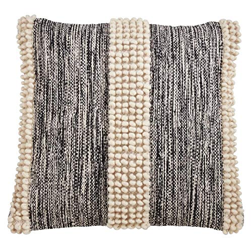 - > POM POM STRIPE DESIGN THROW PILLOW – Embellish your sofa, chair, or loveseat with the soft textured pom pom striped design of this rectangle or square-shaped throw pillow. This rustic-style throw pillow is made with natural cotton and wool materials for durability and softness, and the solid back has a zipper for easy removal.