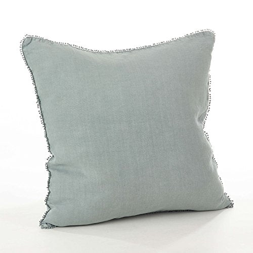 Fennco Styles Pomponin Collection Pompom Design Down Filled 100% Linen Decorative Throw Pillow 20" W x 20" L