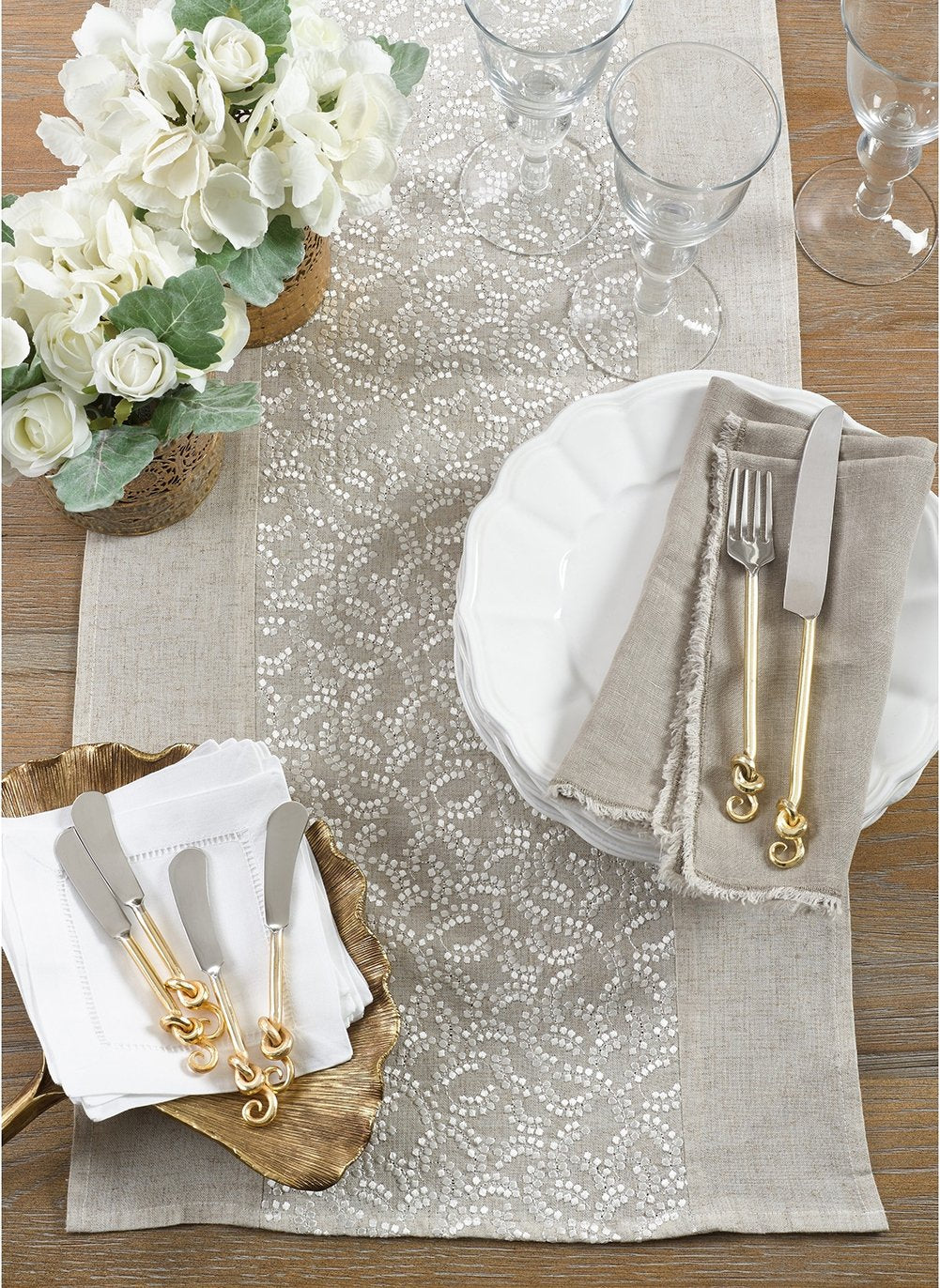 - EMBROIDERED WILLOWS TABLE RUNNER - Featuring a beautiful willows pattern that enhances the aesthetic appeal of your traditionally styled home, the linen-blend construction provides a stylish, casual look, while the subtle embroidered pattern adds a playful, whimsical touch that makes dinnertime special.