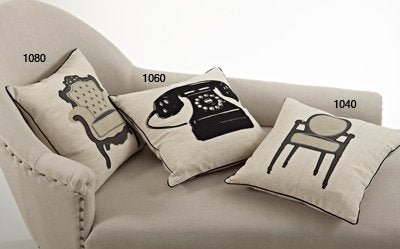 - Dress your living space in contemporary style with stylish "Petite Chaise" Collection printed chair design pillow on natural fabric.