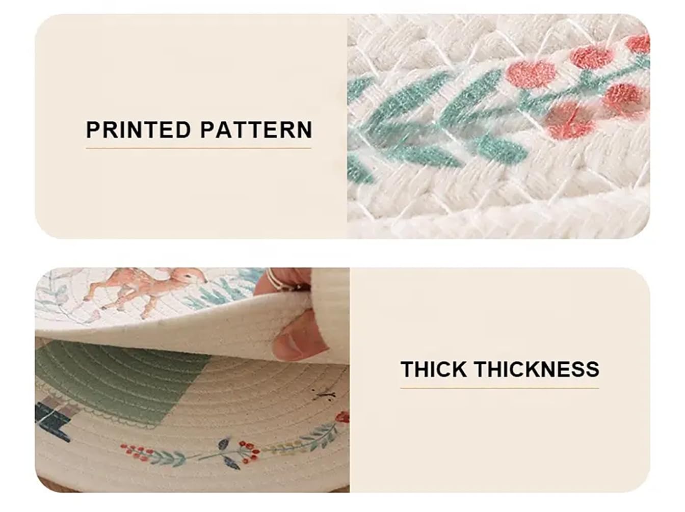 - PREMIUM QUALITY – We craft our decorative placemats of superior quality with cotton and polyester construction, durable, and non-slip, which insulates against heat and sound, shielding your table from hot dishes and minimizing noise when plates and cutlery are set down, protecting your table and tablecloth from scratches or other damages. These cartoon-style placemats set a beautiful base for a delicious meal for any occasion. Care: Hand washes cold, hang dry, or lay flat to dry.