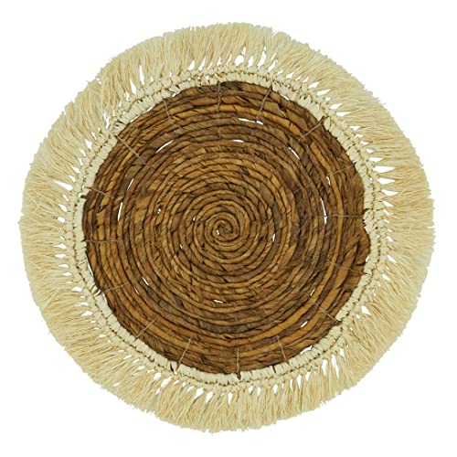 - RAFFIA WOVEN FRINGE PLACEMAT – Complete your favorite dinnerware with this Raffia Abaca Woven Placemat. Featuring handmade woven detailing creates an exotic and rich textured look while dramatic fringe trim lends a natural feel to the table. The natural coloring pairs well with various dinnerware and table décor pieces for versatile use, perfect for protecting your table from hot dishes and spills. Coordinate with casual or formal dinnerware for a chic aesthetic.
