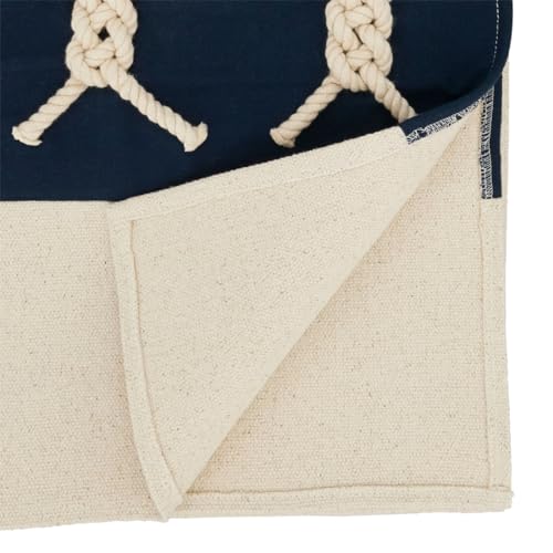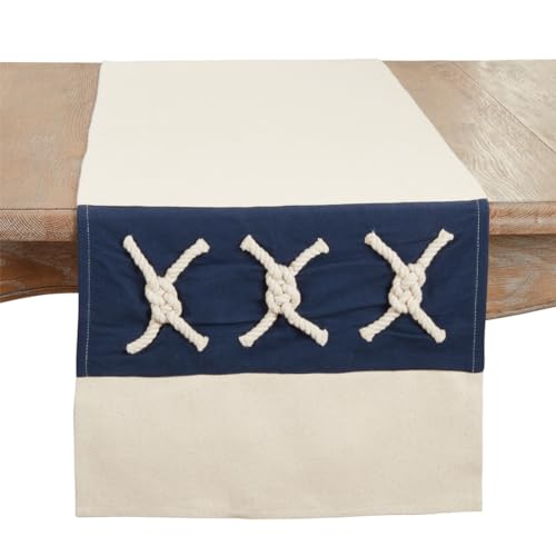 Fennco Styles Rope Knots Appliqué Cotton Table Runner 16" W x 72" L – Navy Blue Nautical Inspired Table Cover for Home, Dining Room, Banquets, Holidays and Special Events