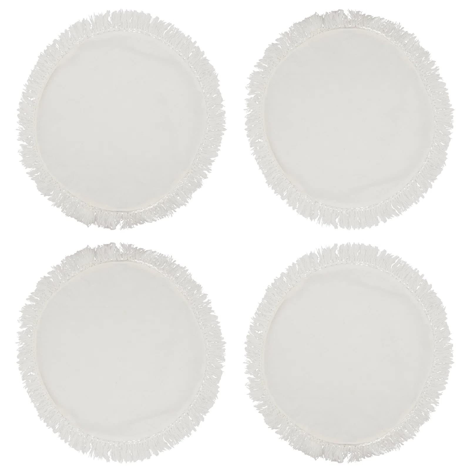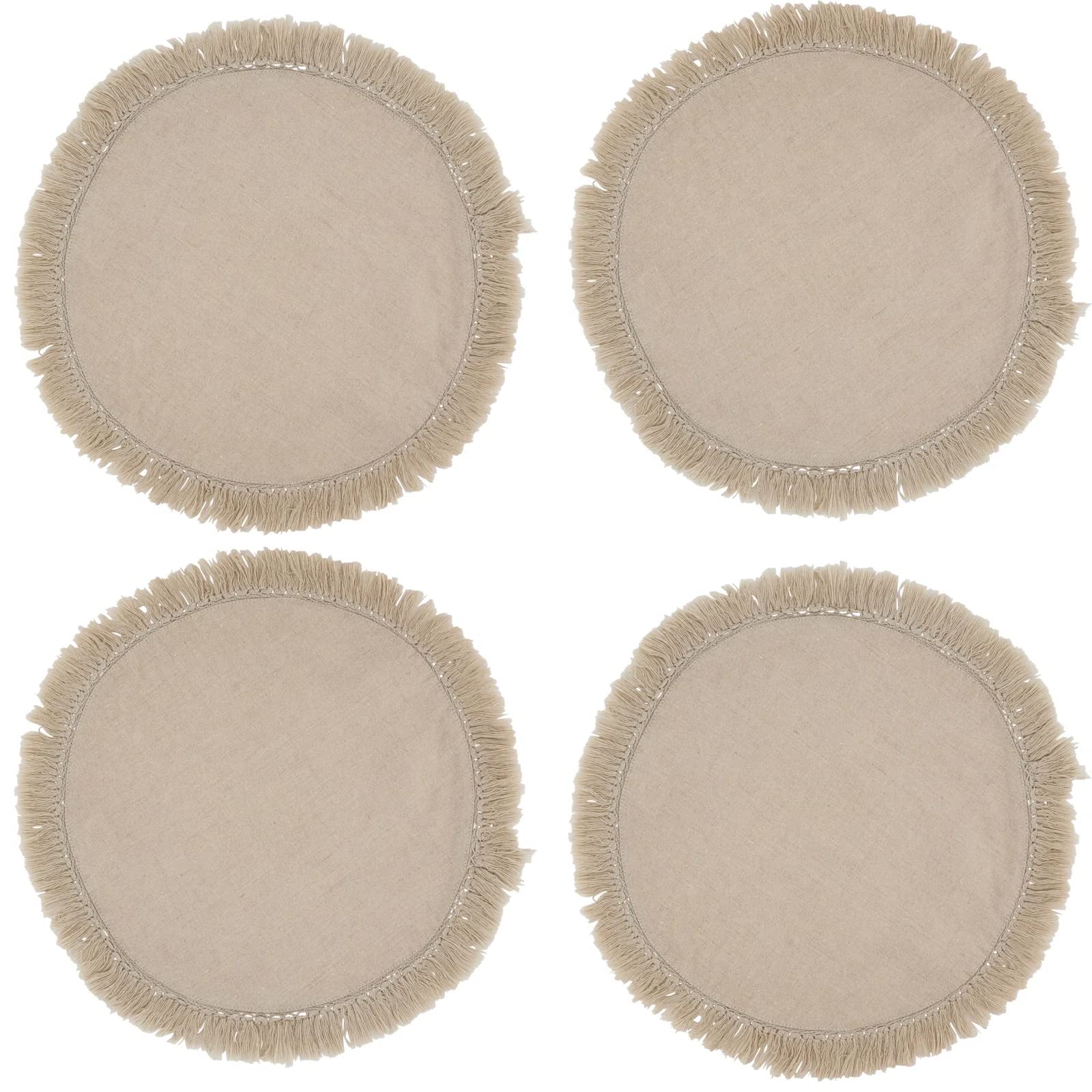 - 4PK STONEWASHED FRINGE PLACEMATS – Add beautiful softness to your dinner table with this Stonewashed Fringe Round Placemat Set from Fennco Styles. It's finished in muted tones with a fringe that adds a casual style to your table décor. It comes in a variety of solid colors to accommodate any décor, simply add some decorative table linens and dinnerware to add a pop of color and complete the look of your tablescape. Excellent for events, parties, and everyday décor use during the holiday season.