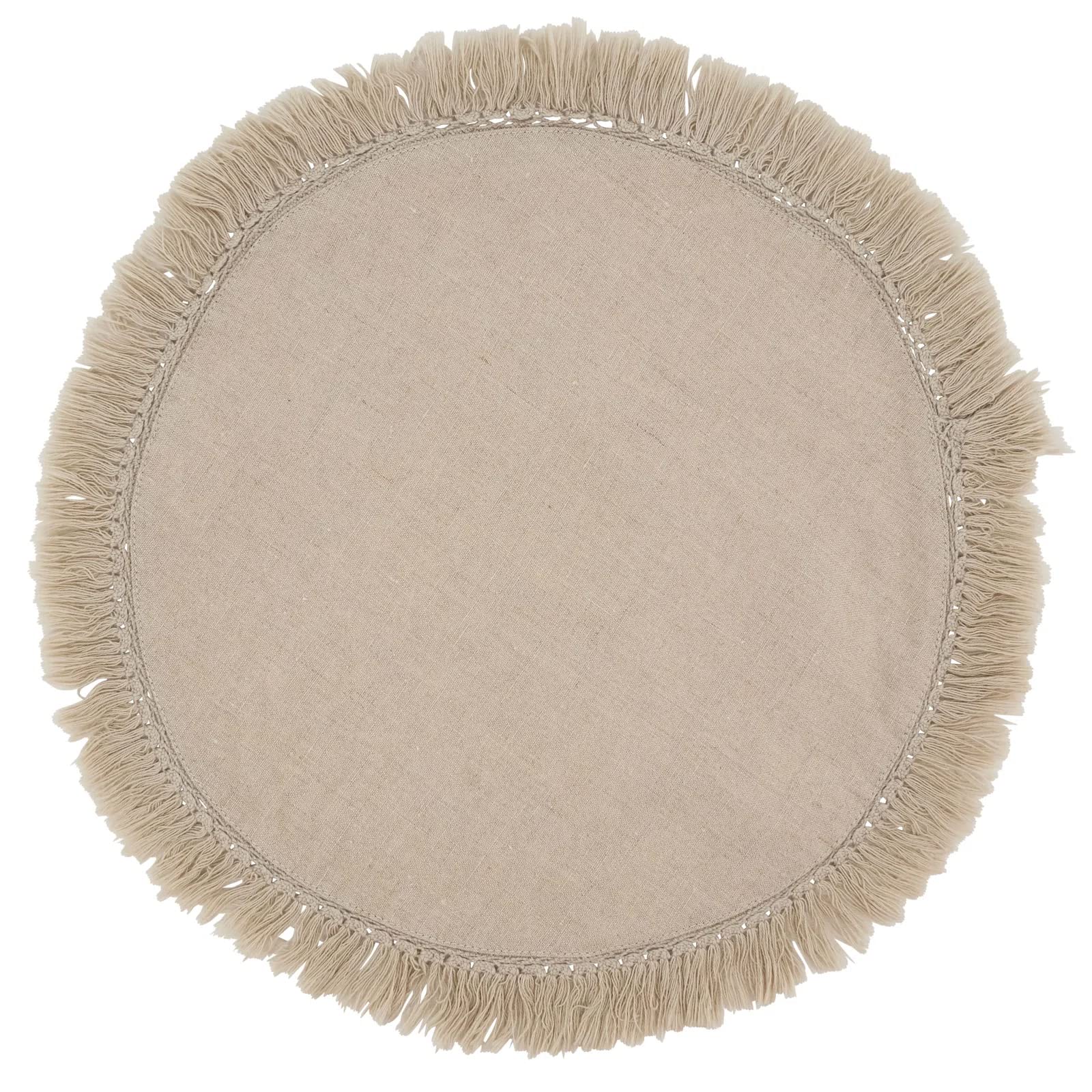 Details: Fennco Styles Stonewashed Fringe Design 100% Linen Placemats 13" Round, Set of 4 Add beautiful softness to your dinner table with this Stonewashed Fringe Round Placemat Set from Fennco Styles. It's finished in muted tones with a fringe that adds a casual style to your table décor. It comes in a variety of solid colors to accommodate any décor, simply add some decorative table linens and dinnerware to add a pop of color and complete the look of your tablescape. Excellent for events, parties, and everyday décor use during the holiday season. PRODUCT DETAILS : Dimensions: 13 x 13 inches Material: linen Care Instructions: cool machine wash, dry clean recommended, cool iron. Our Philosophy: At Fennco Styles you can shop a carefully selected range of home, lifestyle and gift products. We believe our homes should be reflections of the journeys we take. Our personal spaces deserve designs with a soul, a story, and a purpose. Our lifestyle brand offers inspired living through high-quality products, exclusive designs, and timeless style. We aim to source ethically, looking for products that are made from sustainable materials and designed to last and seeking out Makers that are conscious of their impact on the environment.