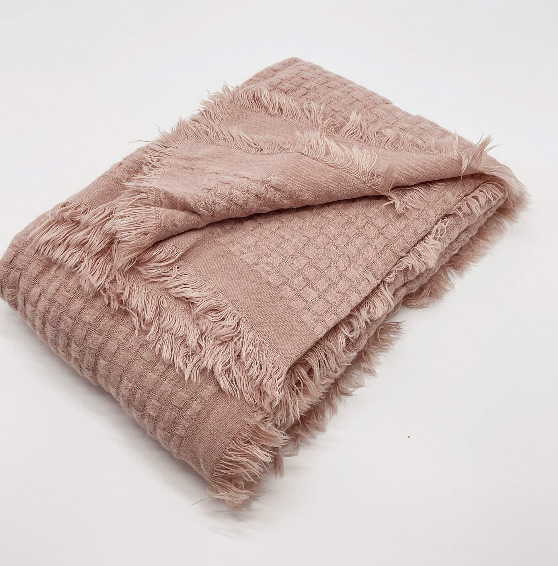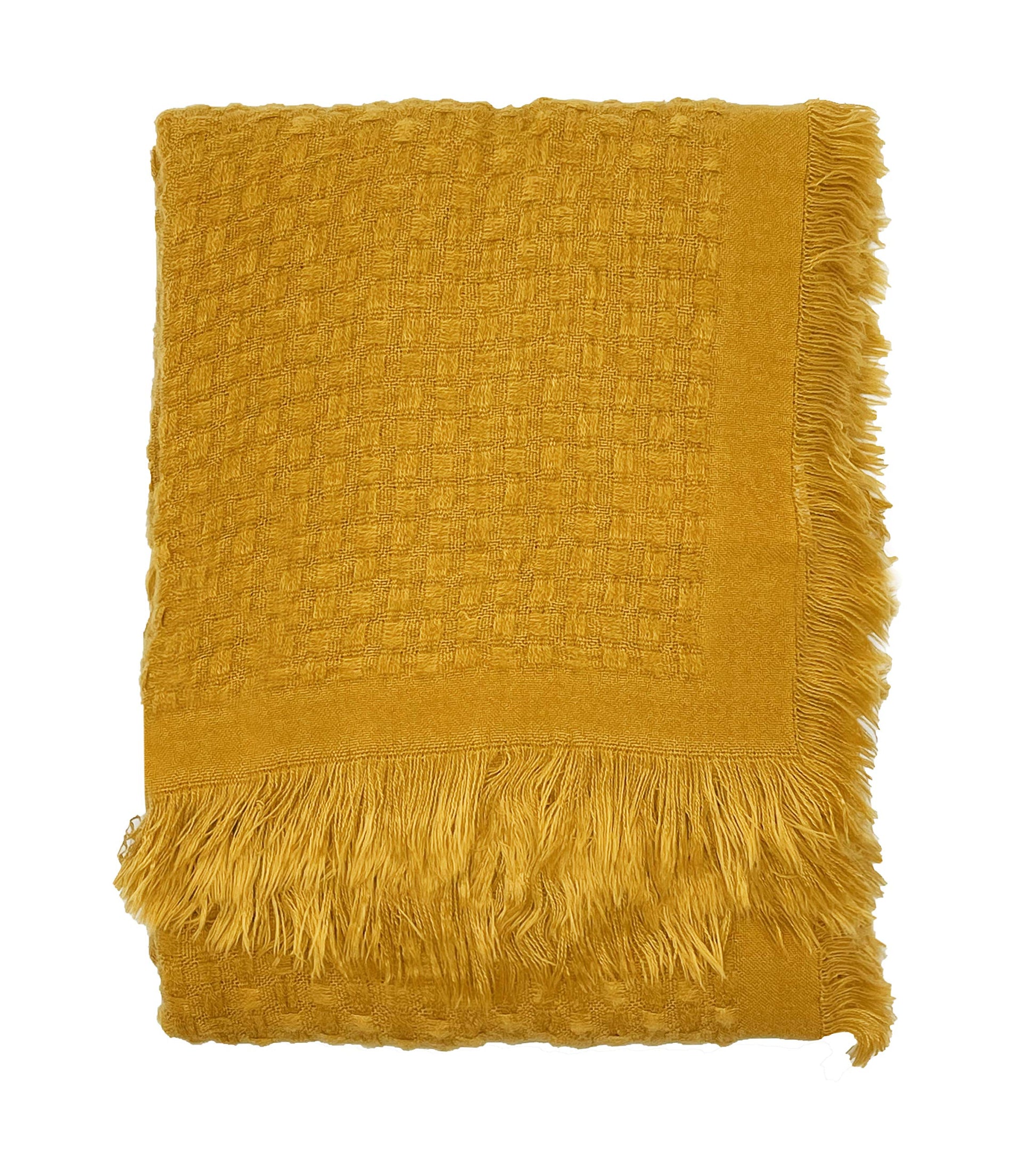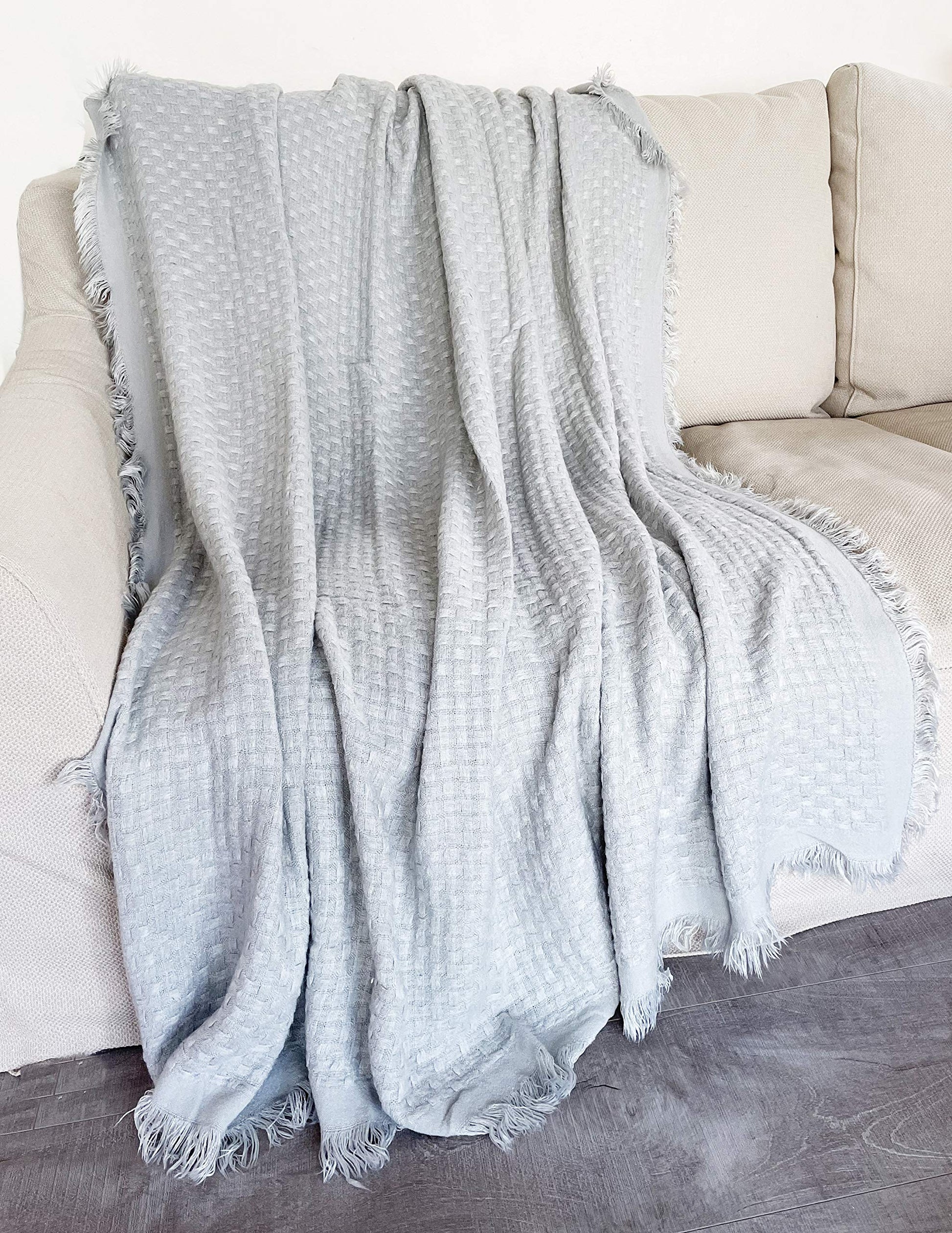 - WAFFLE WEAVE FRINGE THROW BLANKET – Add a beautiful pop of color to your home with this Textured Fringe Throw Blanket. Features subtly weave textured that's adds sophisticated and soft to the touch to this throw blanket, finished with fringe detail on the ends for ornate appeal. Make it particularly beautiful when draped over the edge of an armchair. Neutral color as well as to pair with a wide range of accent pillows.