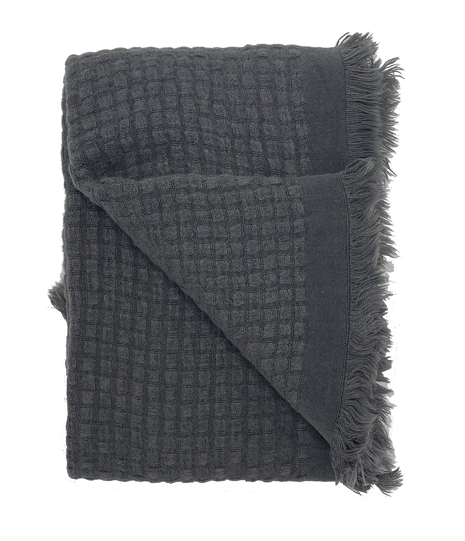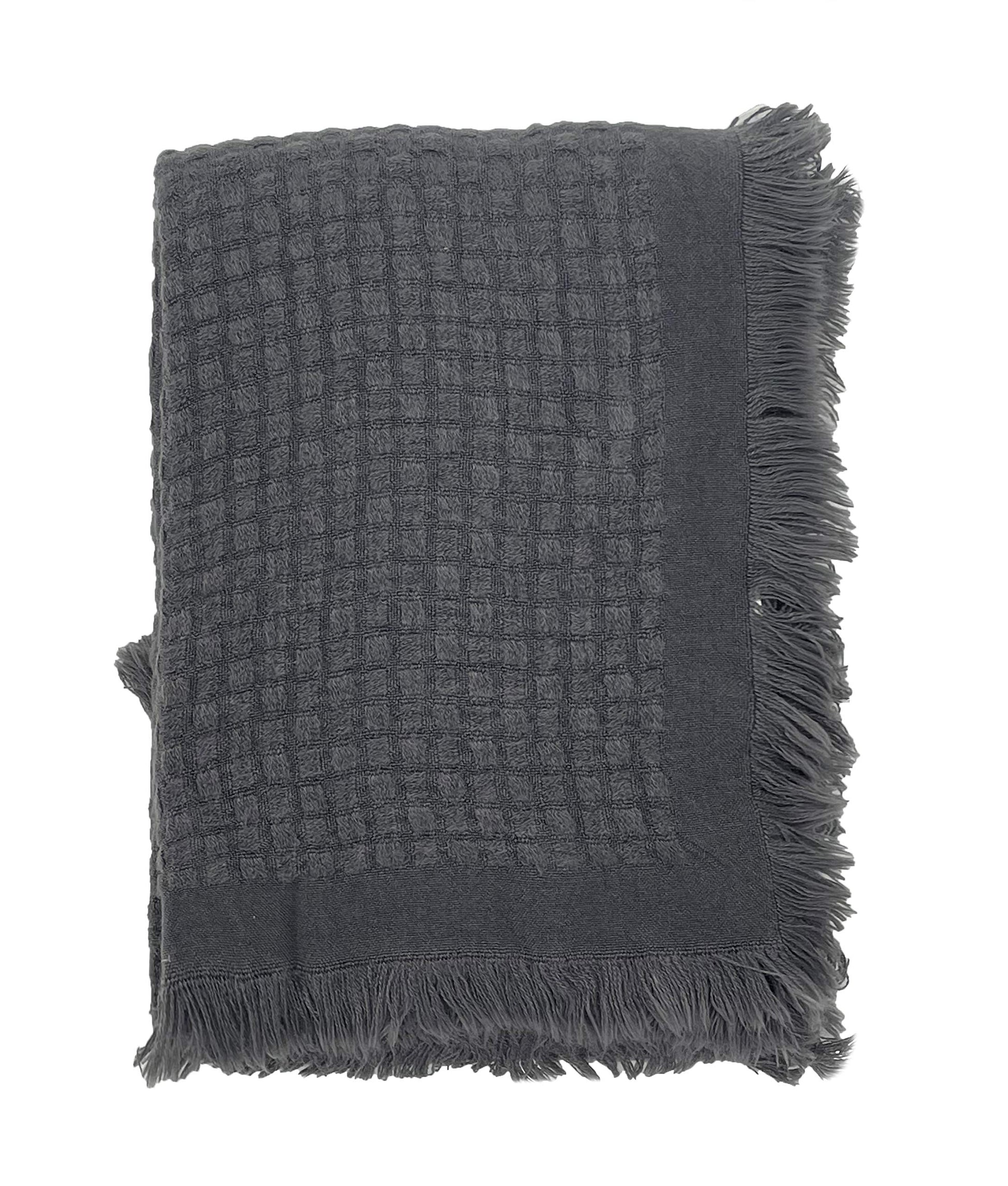 Fennco Styles Waffle Weave Solid Lightweight Throw Blanket with Fringe 50" W x 60" L - Slate Blanket for Sofa, Couch, Living Room and Bedroom Décor
