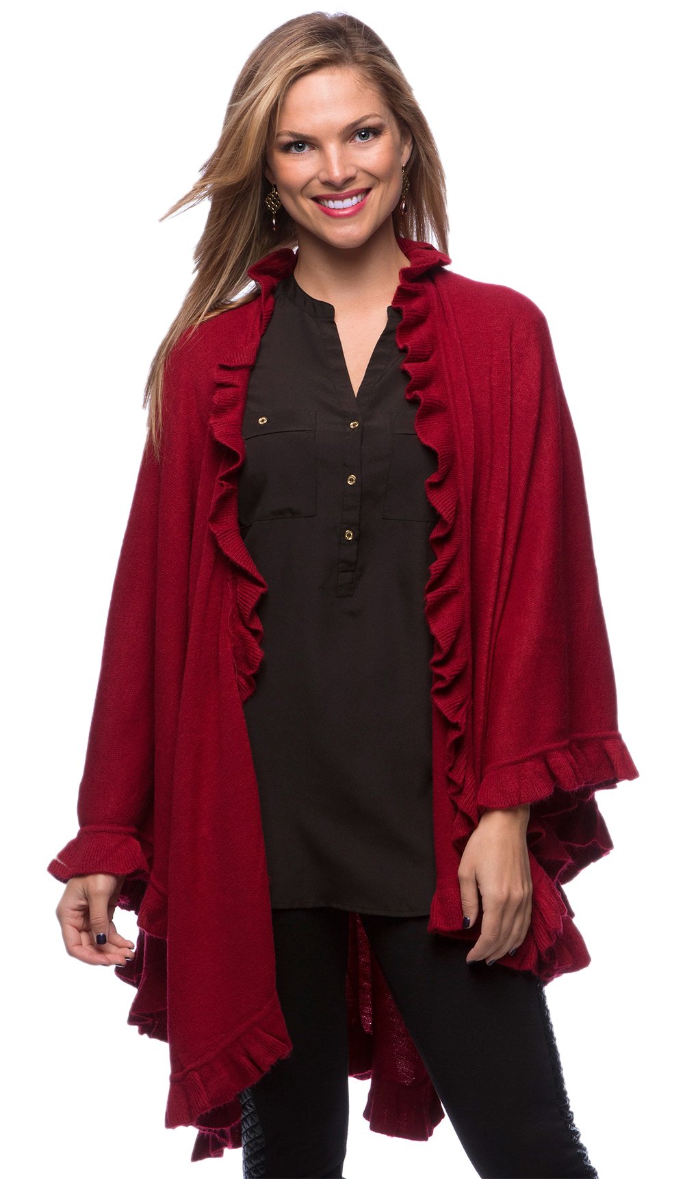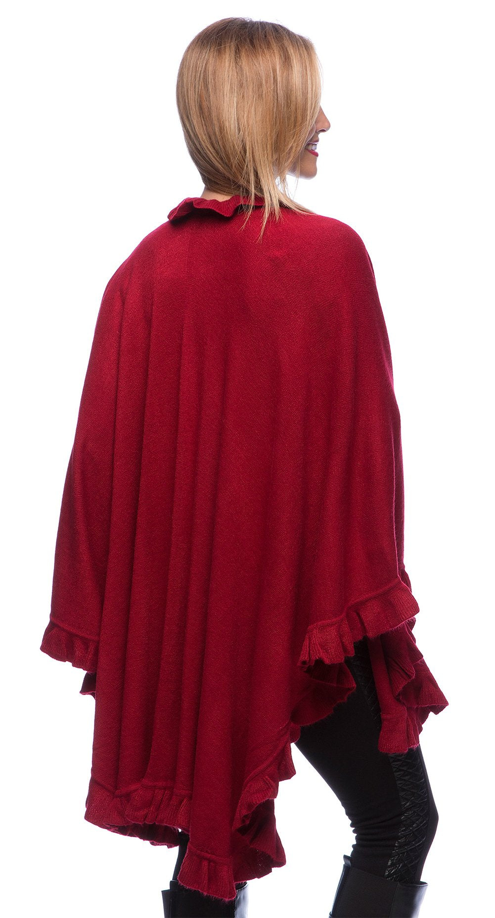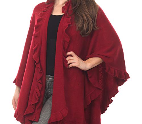 stylesilove Michonne Collection Knit Ruffled 44 x 78 Inch Wrap Poncho Cape for Cold Weather