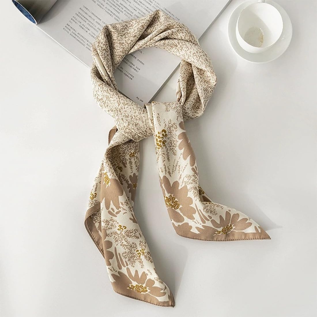 - VERSATILE STYLING – The versatility of this Floral Print Silk-Like Neckerchief makes it a wardrobe staple, effortlessly elevating your fashion ensemble with a touch of sophistication and timeless charm. It can be worn in multiple ways, allowing for creative and personalized styling. Pair it with your favorite jeans and a t-shirt for a relaxed look, or drape it around the neck in a classic knot or bow, tied onto a handbag for a chic touch, or even worn as a headband or hair accessory.