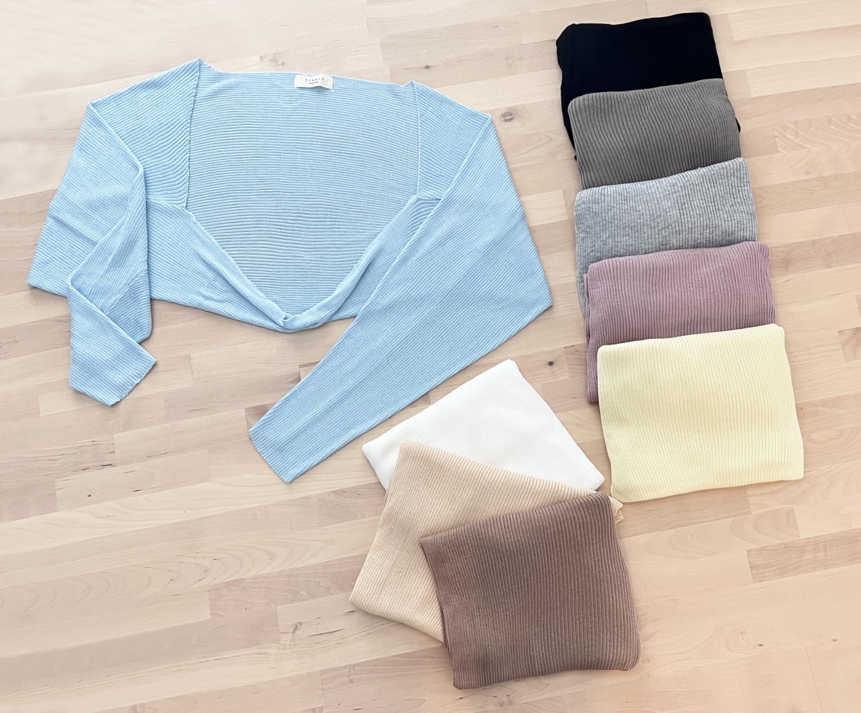 - PREMIUM MATERIAL & SIZE DETAILS – Crafted with the finest blend of acrylic and spandex, this top offers a delightful combination of breathability and softness, ensuring a luxurious feel against the skin. This ribbed shrug approx. 25 inches wide, 14 inches long, one size fits most!